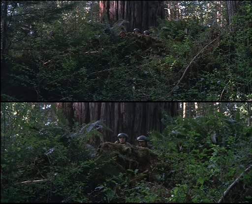 Высадка диверсионного отряда прошла почти без сучка и задоринки, если не считать некоторой помощи со стороны Дарта Вейдера, приказавшего пропустить транспорт. Но вот по лесу диверсанты шли довольно интересно: никто не контролировал фланги и тыл, не размалевали в камуфляжные цвета Р2Д2 с Ц3ПО и не заткнули последнему вокодер.