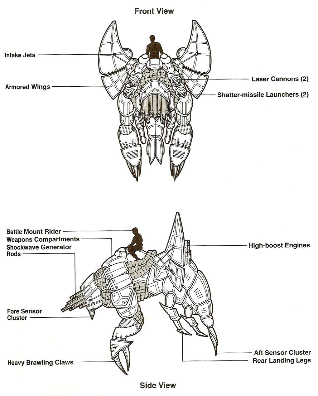 Боевой дроид Василиск выглядит как нечто живое: жук с очень твёрдой оболочкой или покрытый бронёй залорианский скальный лев. Однако в движении он скорее напоминает десантный корабль. Мандалорцы предпочитали быстрое погружение с орбиты планет сразу до поверхности, используя головокружительную скорость снижения для сбивания с толку систем наведения вражеской артиллерии. Использовавшие герметичную и устойчивую к воздействию вакуума броню, они не испытывали трудностей со своими скакунами даже глубоко в межпланетном пространстве.