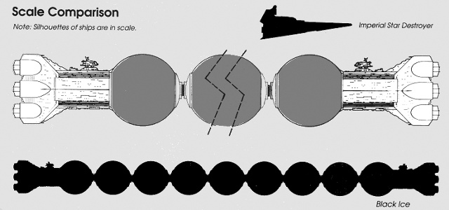 Есть небольшая нестыковка в источнике. На иллюстрации судьбоносного тарана, которую вы можете видеть выше, «Торпедная Сфера» намного больше «Черного Льда» тогда как по всем без исключения источникам ее диаметр составляет всего лишь 1900 метров.