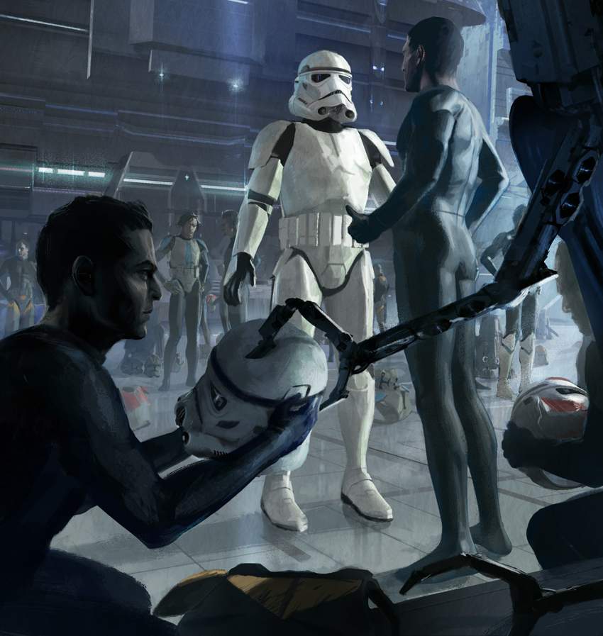 Первые не-клоны стали появляться среди штурмовиков в 9 ДБЯ. Тогда же начала формироваться система профессиональной подготовки будущих штурмовиков, частично основанная на учебных программах использованных при обучении каминоанских клонов. С каждым годом количество спаарти-клонов, а также их каминоанских собратьев, в действующих дивизиях и легионах стремительно сокращалось. Ко времени битвы при Явине штурмовой корпус лишь на треть состоял из клонов.