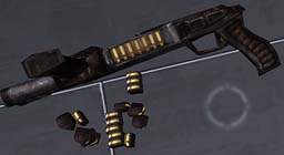 Хотя в этом оружии в качестве поражающего элемента используется дробь, разогнанная до умопомрачительных скоростей, она запускается из ствола при помощи электромагнитного импульса, а не пороховых газов. Поэтому это оружие можно, с небольшой натяжкой, считать энергетическим… или полуэнергетическим. В каждом патроне, выглядящим как небольшая пластинка, находится восемь крупных дробинок, способных нанести тяжелые раны любому живому существу. Однако против дроидов это оружие практически бессильно, так как дробь плохо пробивает их металлический корпус. Да и заброневое действие небольших дробинок на металлическую «плоть» незначительное. Также оружие с трудом пробивает персональные энергетические щиты предусматривающие защиту от неэнергетического оружия.